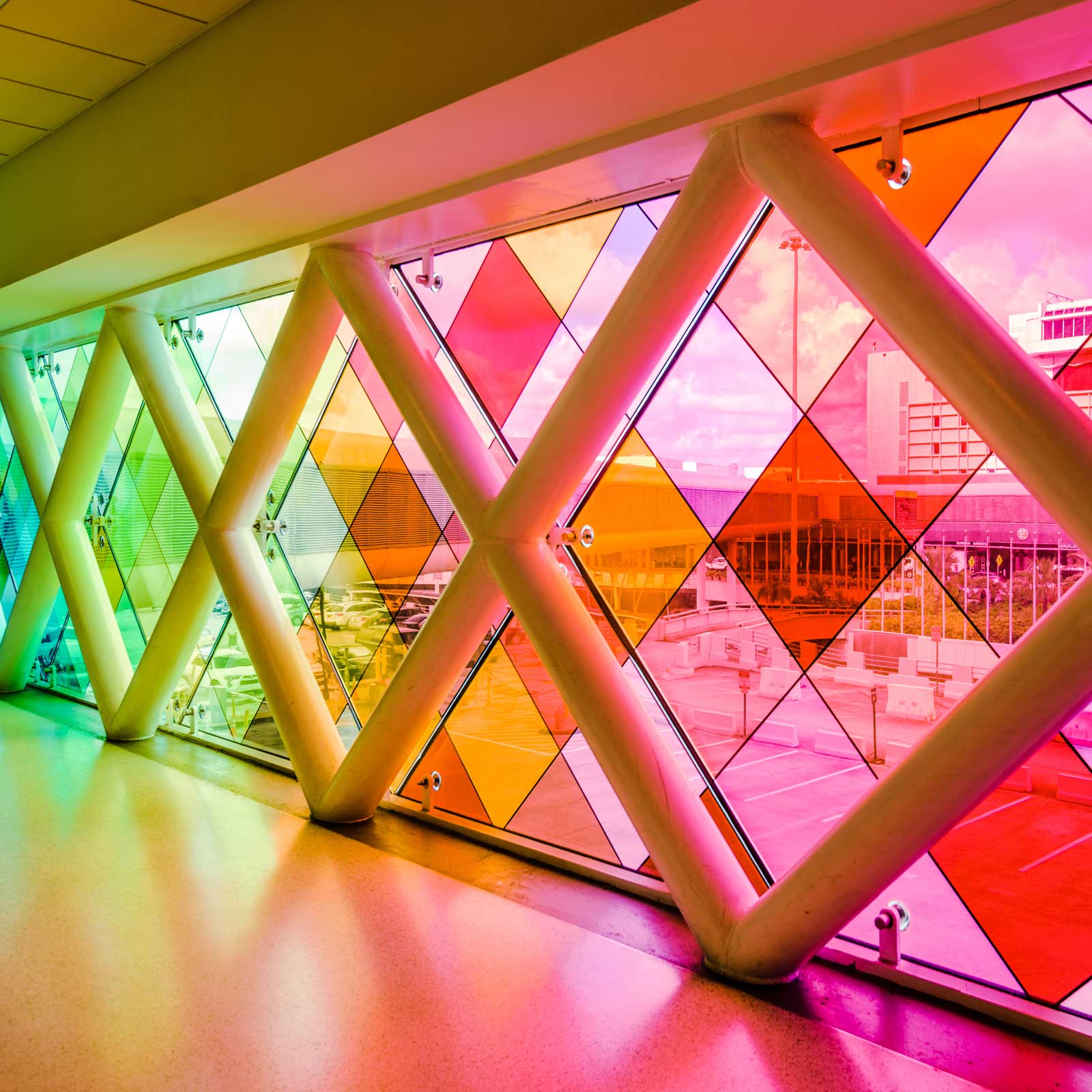 Bringing in natural light, Chroma-Lam® adds privacy and depth to the design of a space without compromising function. The rich palette of colors allows for several design intents to be satisfied, including wayfinding, privacy, and partitioning.